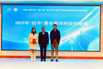 王东亮书记宣读了《关于表彰2025年“纺华”青年教师科技创新奖获奖教师的决定》。在热烈的掌声中,徐樑华教授为获奖教师颁发了荣誉证书。颁奖仪式后,获奖教师代表王玉博士发表感言。